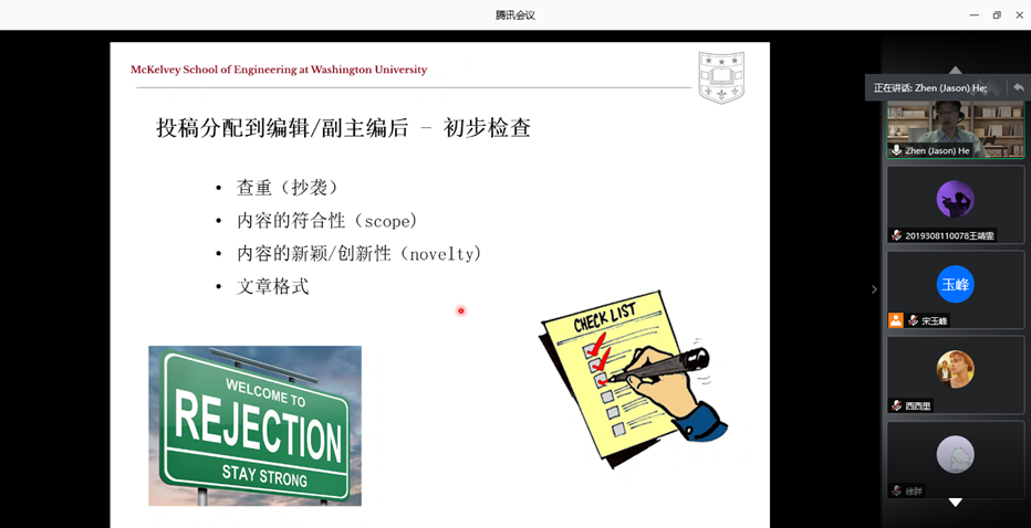 (爱游戏ayx中国官方网站通讯员 郑建铎 供图 郑建铎)7月30日上午,公司第20008期水产讲坛学术活动通过腾讯会议在线上举行,美国圣路易斯华盛顿大学的贺震教授作题为“如何发表高水平科研论文”的报告。贺震教授目前担任多个期刊的主编、共同主编,拥有丰富的审稿经验,了解审稿的流程。本次报告面向全院师生,由学院教授罗智主持。